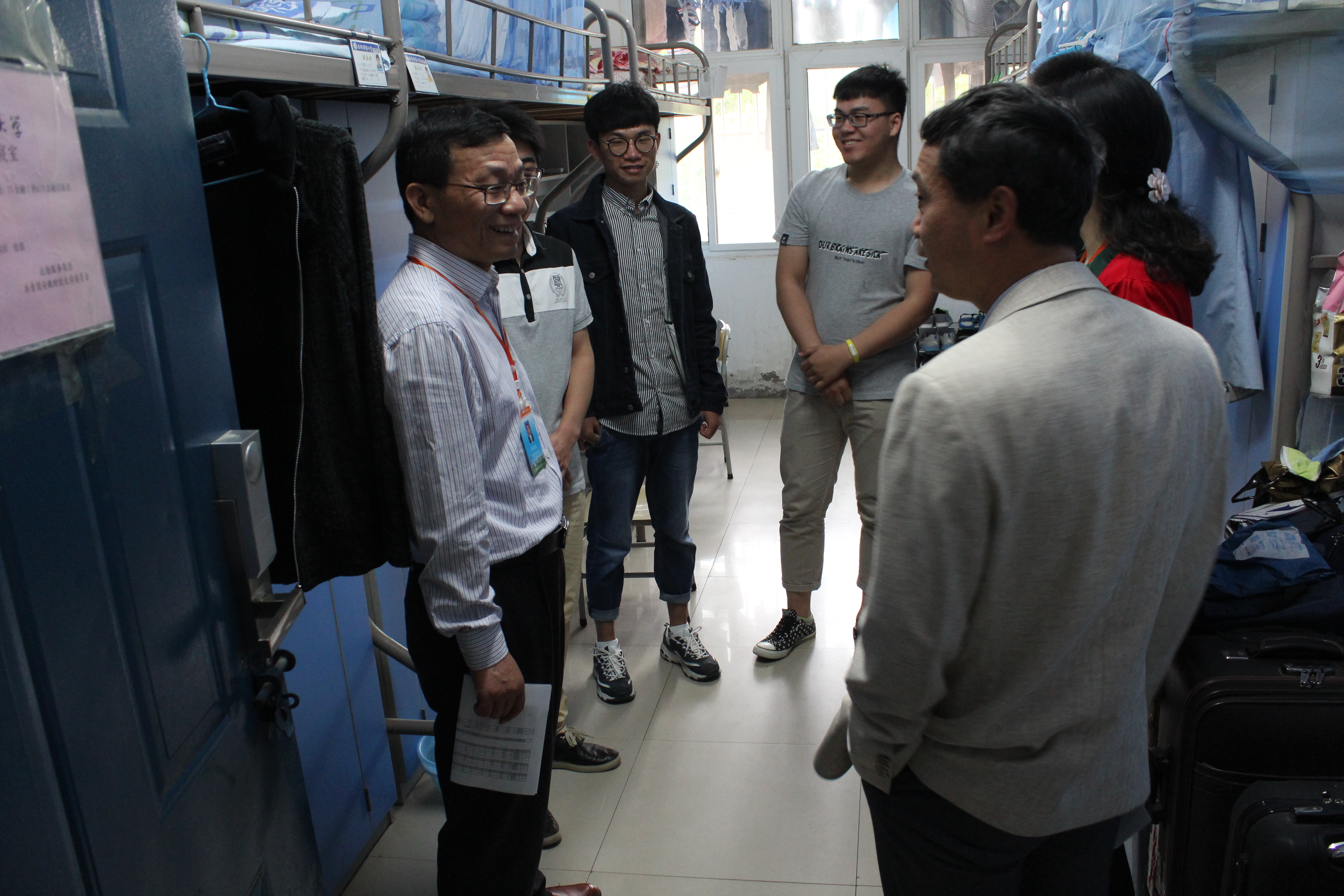 6月6日下午,金融学院院长任森春,党委副书记孙涛、庄晓燕在院团委书记叶帆以及毕业班辅导员代表陪同下走访了2017届毕业生宿舍,与毕业生进行了亲切交流。