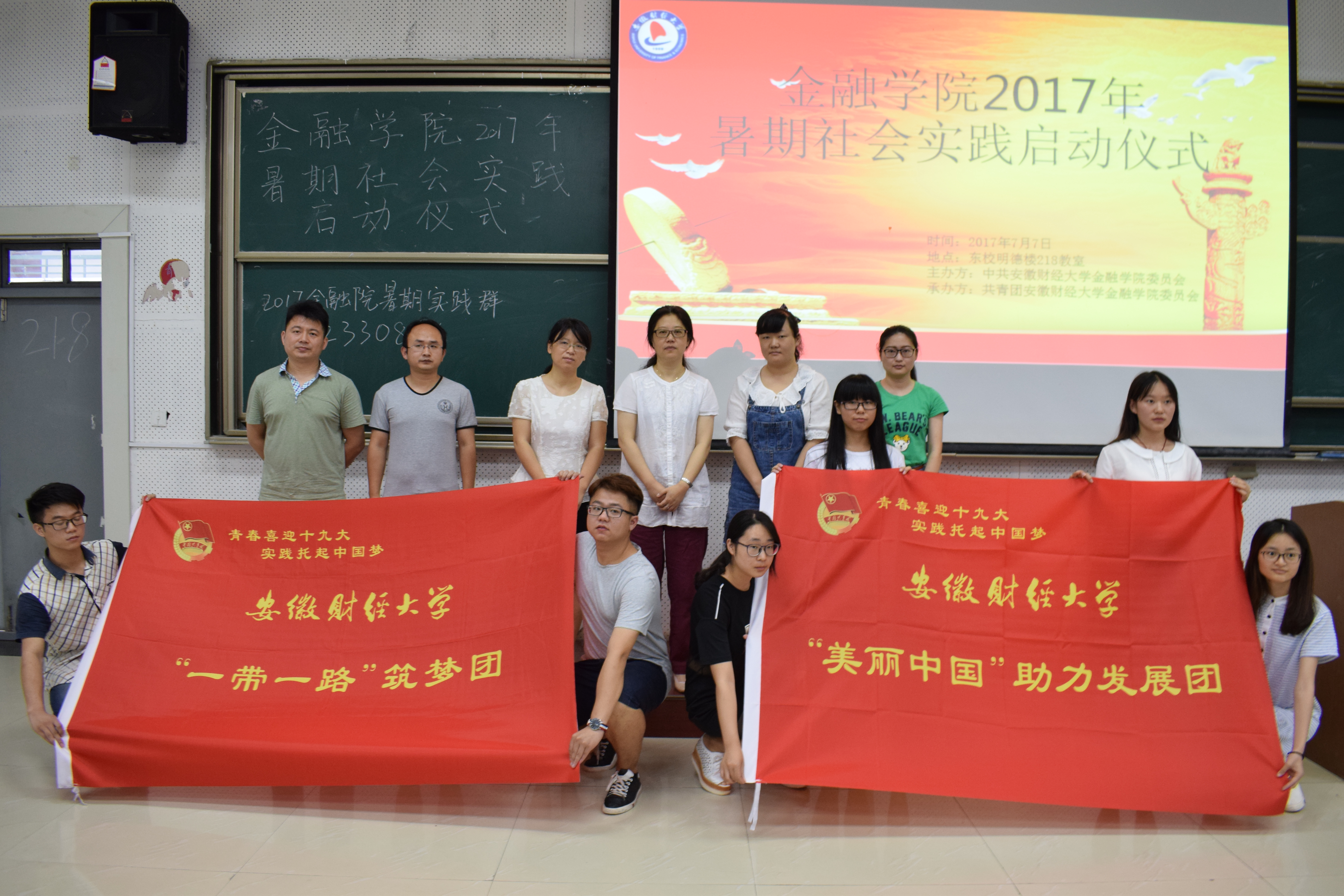 为丰富和深化大学生思想政治教育的实践内容,促进青年学生在理论和实践相结合的过程中增长才干、健康成长,7月7日下午,金融学院在东校区明德楼218教室举行了2017年暑期社会实践启动仪式。院党委副书记庄晓燕、指导老师代表、部分团队负责人以及各团队学生代表参加了仪式。