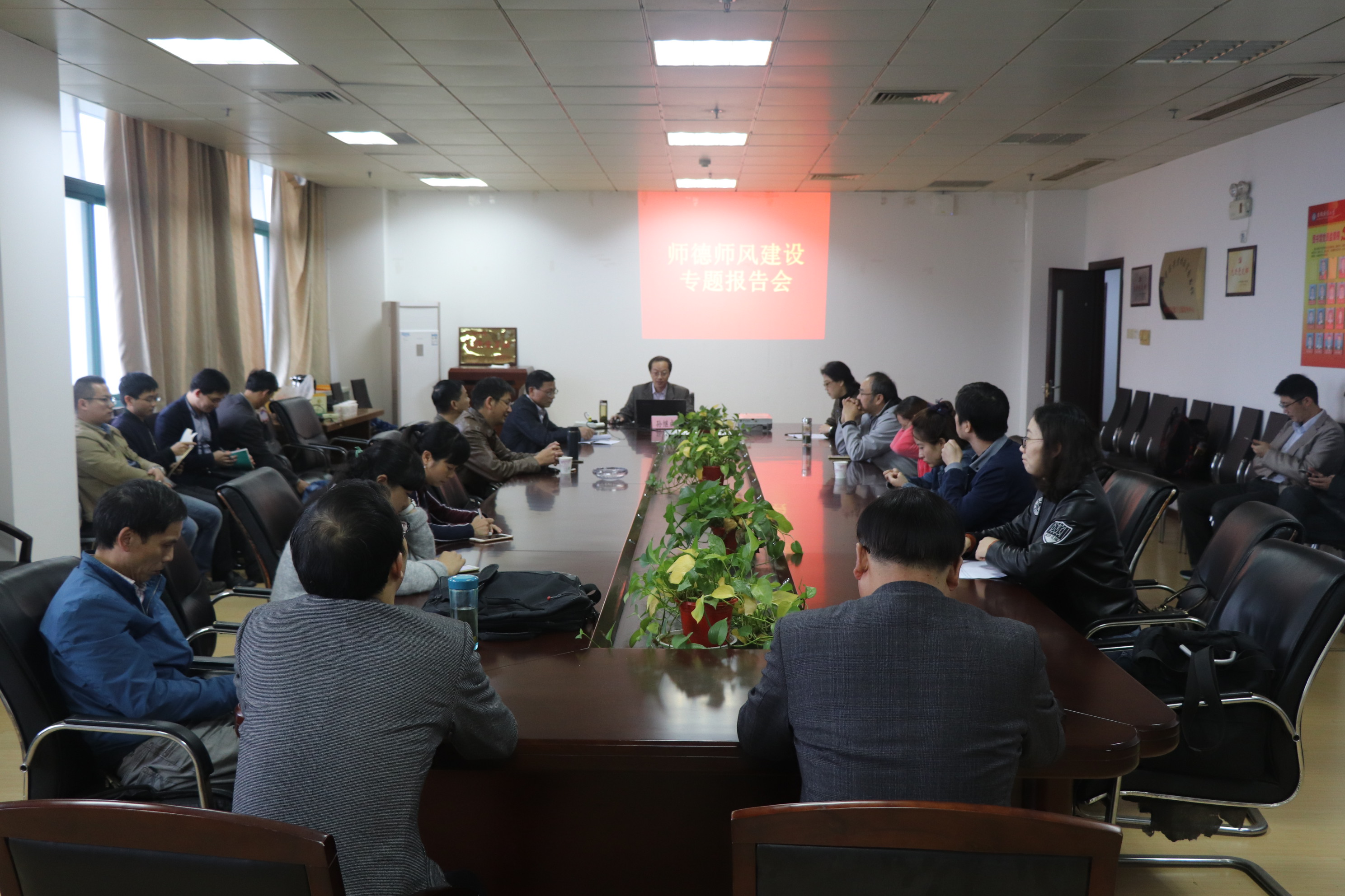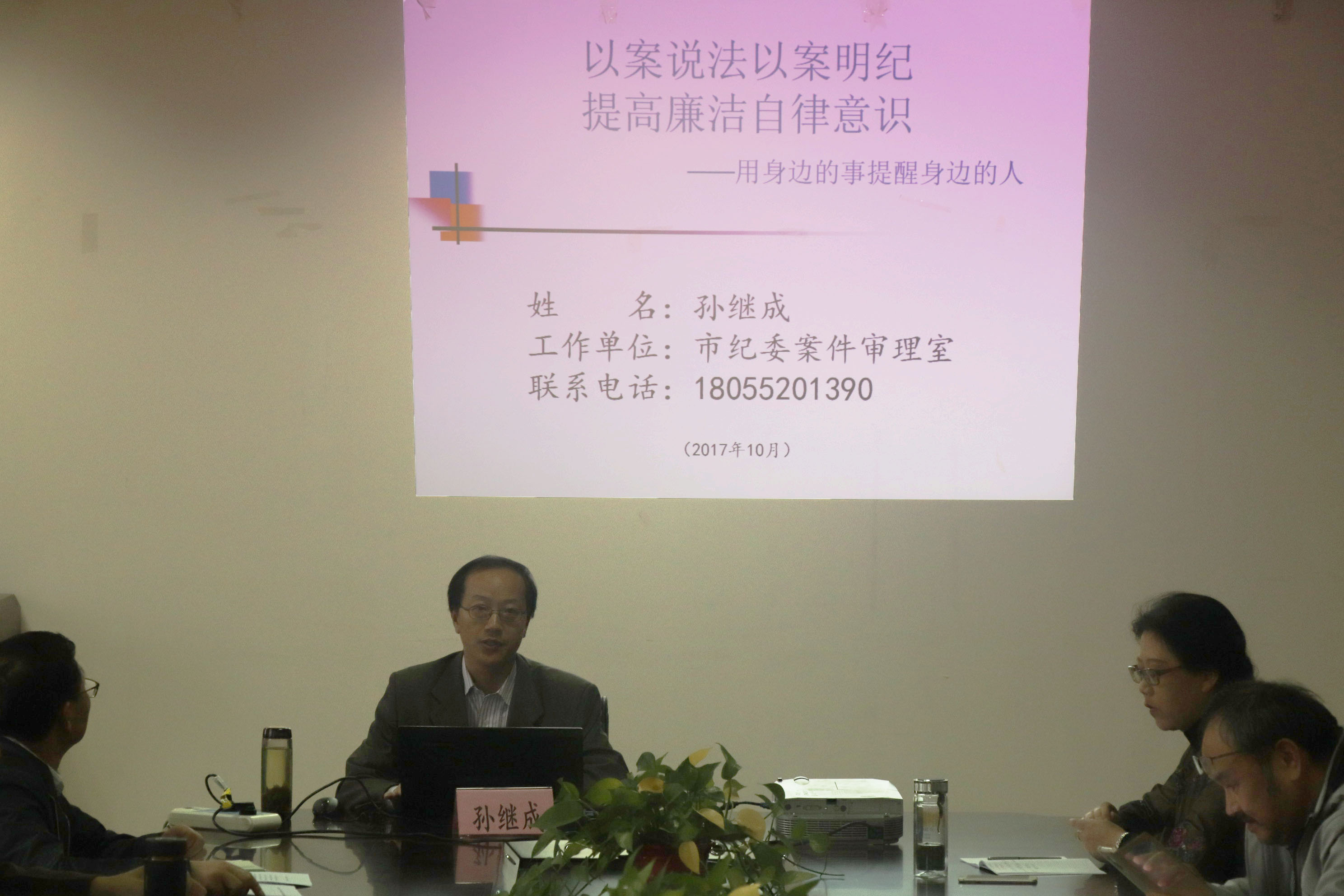 会上,孙继成以《以案说法以案明纪,提高廉洁自律意识——用身边的事提醒身边的人》为题作专题报告。围绕高校教师师德师风建设和党员干部廉洁自律建设,孙继成结合教育领域实际,深刻剖析了加强师德师风建设和提高党员干部廉洁自律意识的重要意义。他引用大量案例,用事实警示大家,使广大教师和党员干部充分认识到违法、违纪、违规和违反师德行为带来的恶劣影响和严重后果,对加强学院师德师风建设和党风廉政建设起到了积极的推动作用。