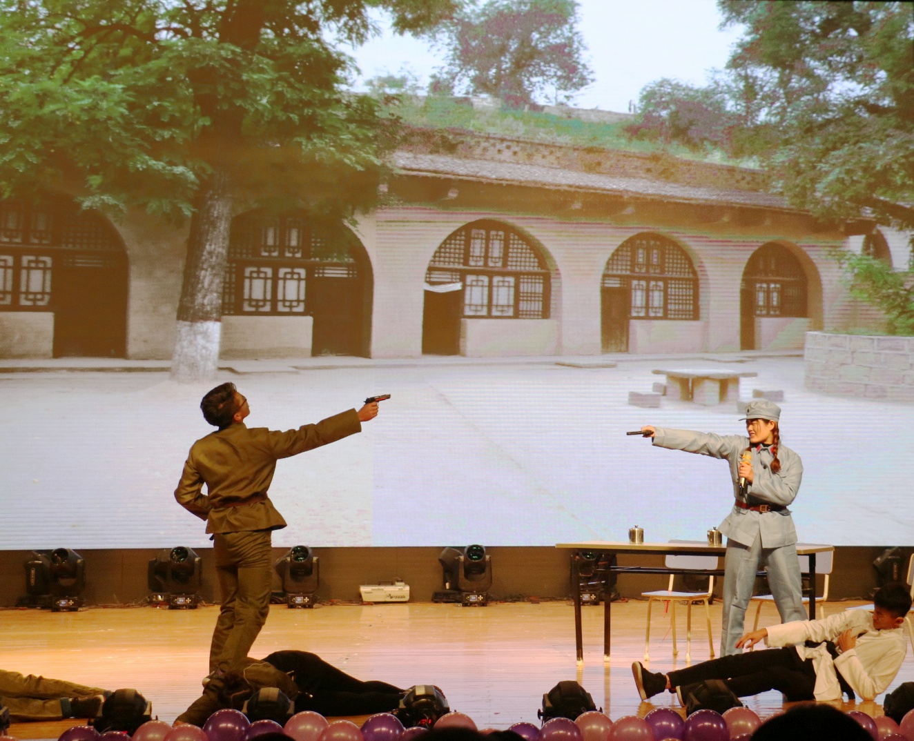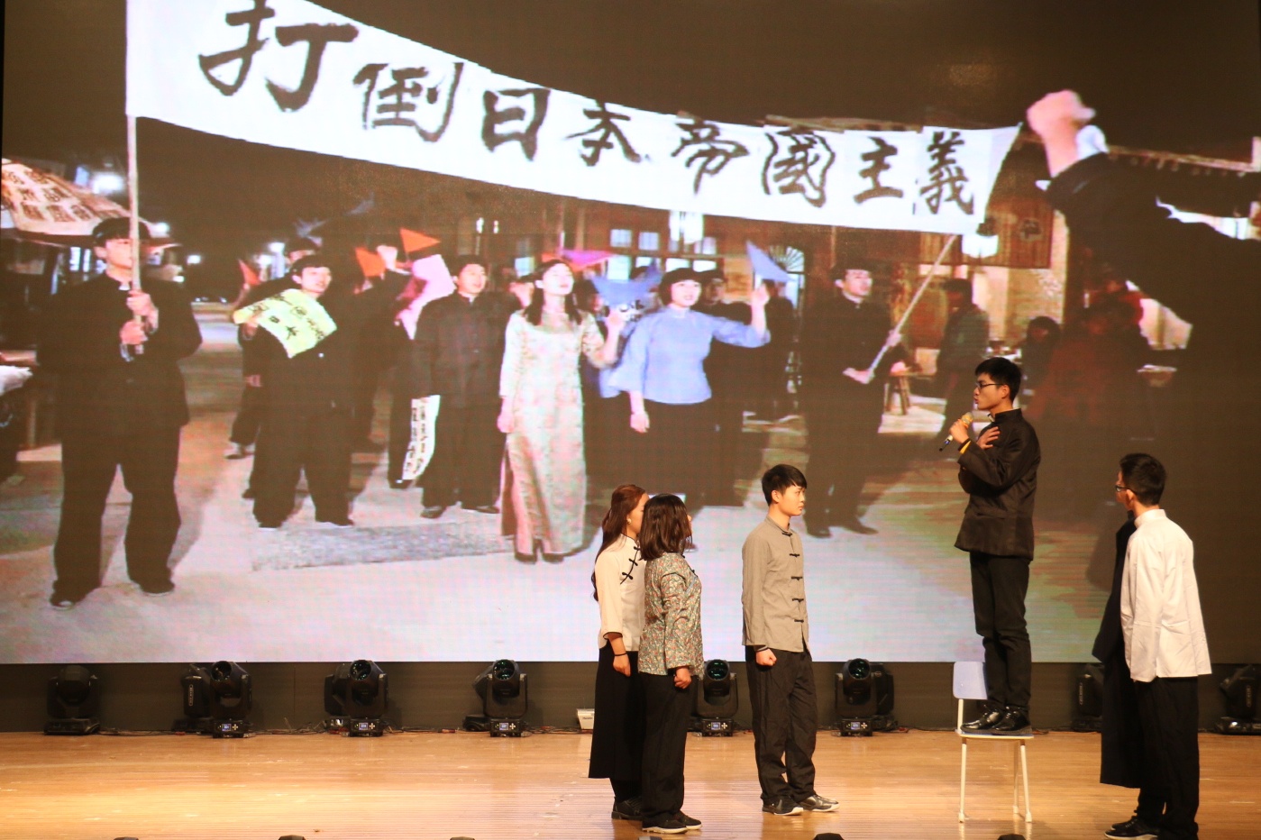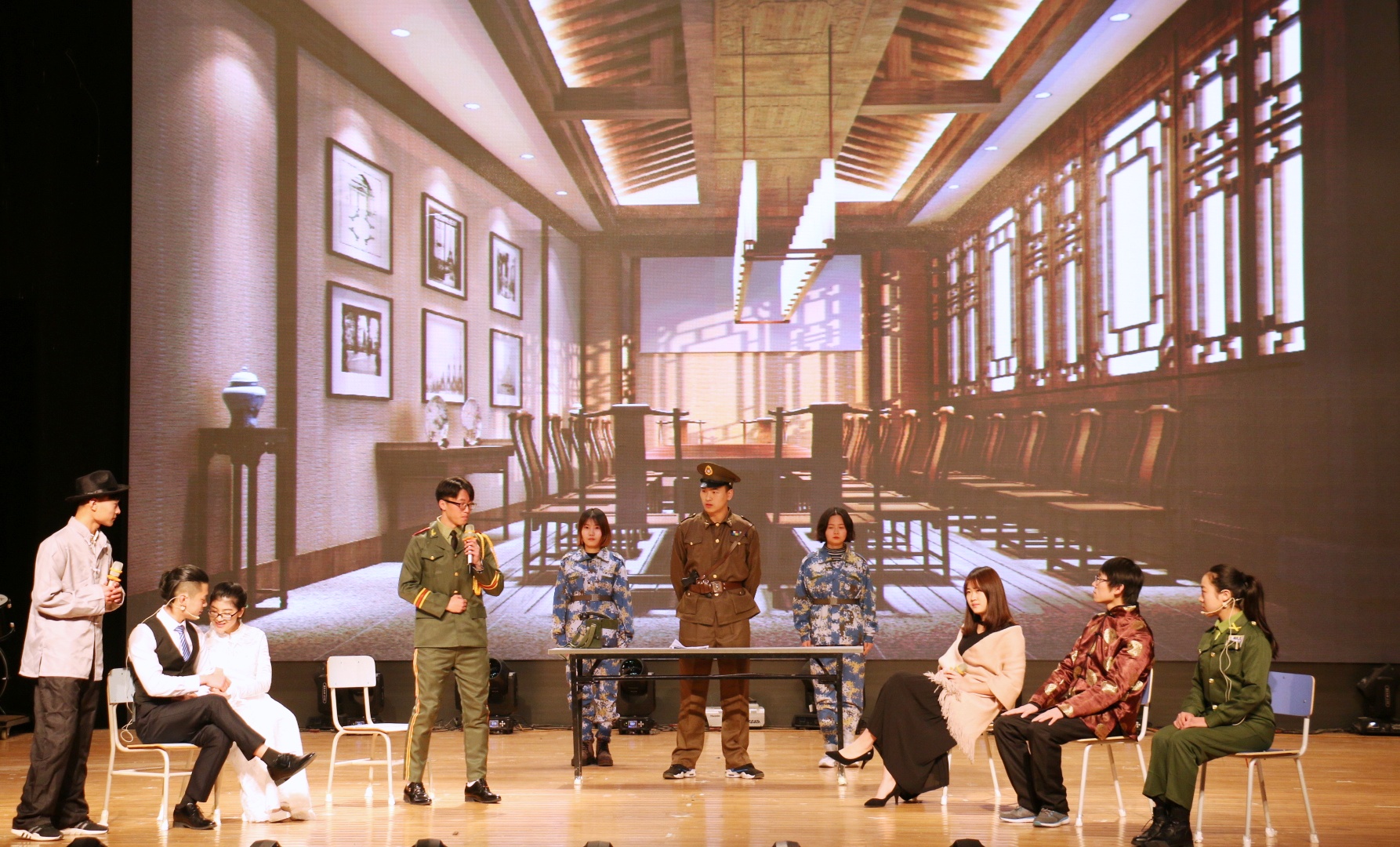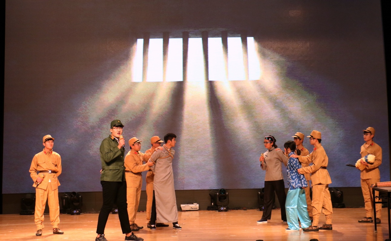 经过历时两个多月的初赛、复赛的精心选拔,8个班级携其作品挺进决赛。学院合唱团和国旗护卫队带来的《走向复兴》作为开场节目,瞬间点燃了全场气氛。《说志》表达了中国共产党美好伟大的志向;《红梨木》以抗日战争为背景,上演了战争中感人至深的亲情;《信仰》通过幽默风趣的表演,诠释了信仰的力量;《战火柔情》让观众感受到了中国共产党铁骨中的柔情与温暖;《眷》倾情演绎了战火纷飞下的儿女情长,凄美壮阔;《谍影重重》展现了共产党员艰苦卓绝的潜伏岁月;《不忘初心》紧扣“不忘初心跟党走”的主题;《众志成城》则上演了一幕幕抵御洪水、保护人民的感人至深的画面。穿插其中的暖场节目《欢喜密探》活跃了现场紧张的气氛,为观众们带来了许多欢声笑语。工商管理学院也带来了助兴节目《不曾远去的顾维钧》,追忆顾维钧在巴黎和会期间面对各国列强据理力争的场景。比赛最后,由曹山路乐队带来的《倔强》燃爆全场。
