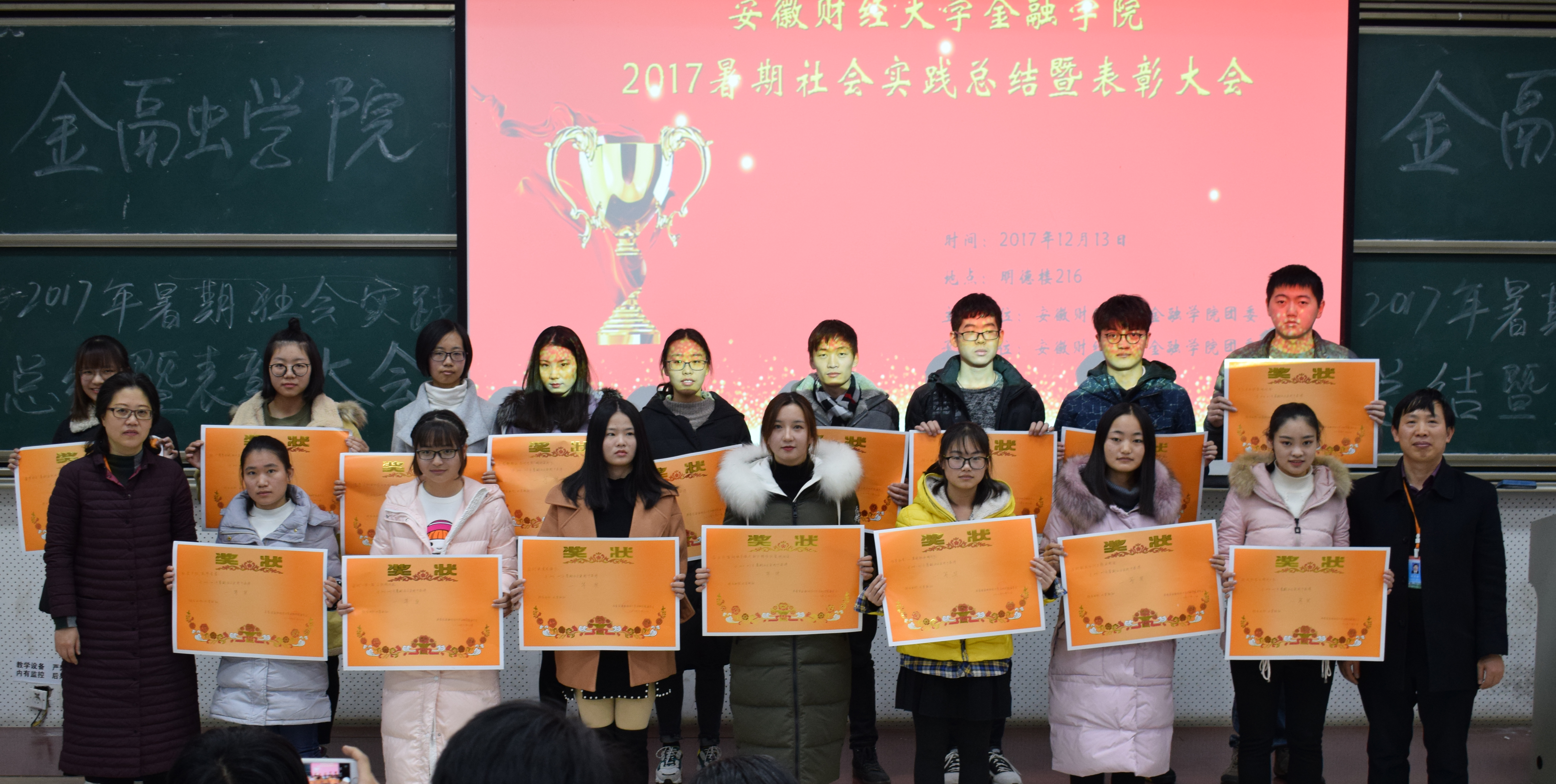 为进一步巩固和扩大暑期社会实践活动的成果,发挥先进典型的示范激励作用,12月13日下午,金融学院在东校区明德楼216教室召开了“少年脚下万里路,实践托起中国梦”暑期社会实践总结暨表彰大会。院党委副书记庄晓燕、副院长张长全、优秀指导教师代表及实践团队代表参加了大会。