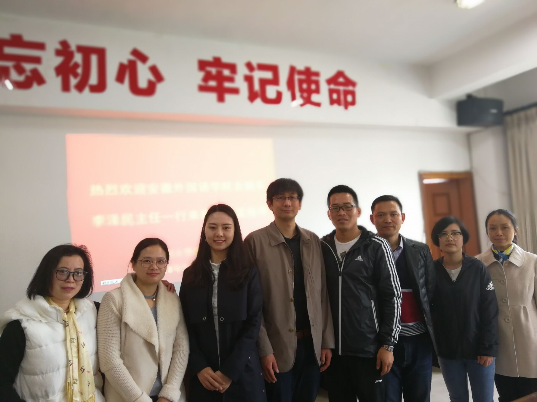 3月27日上午,安徽外国语学院国际经济学院副院长李泽民一行来我院调研,重点围绕实验室建设、使用和教学等,双方进行了座谈交流。学院副院长万光彩教授出席座谈会并讲话。