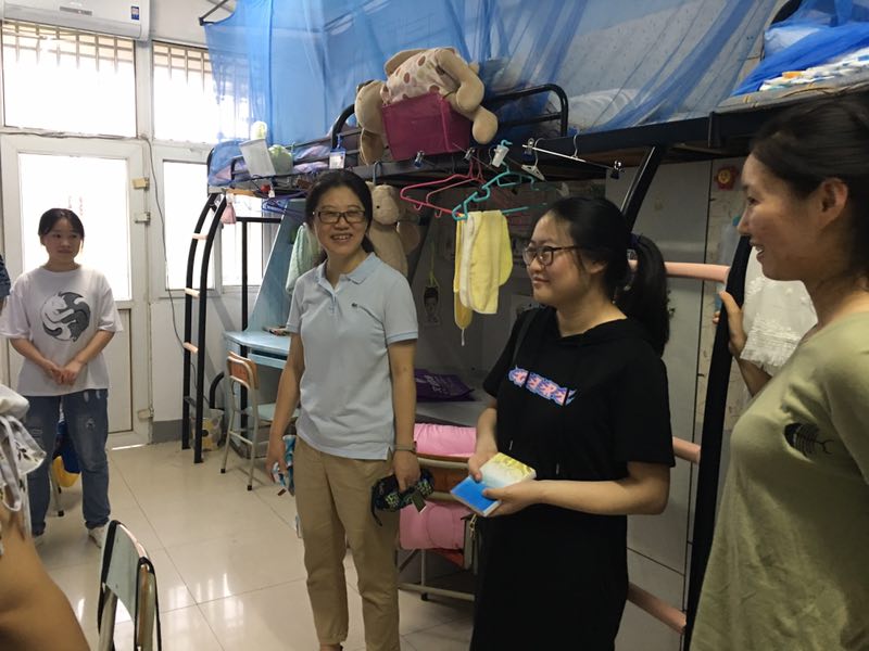 8月6日下午,金融学院党委书记蒋晓华、副书记庄晓燕带领部分2015级班级辅导员深入学生宿舍,看望慰问暑期留校考研学生。