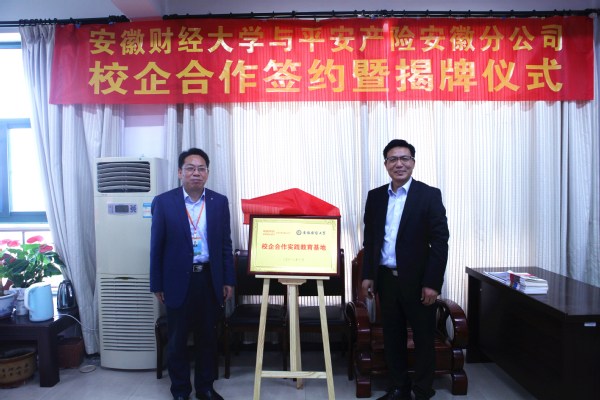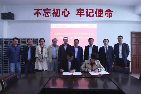10月17日上午,安徽财经大学与平安产险安徽分公司校企合作签约揭牌仪式在学院会议室举行。副校长周加来、我院党委书记蒋晓华、副书记庄晓燕、院长助理张超、保险专硕负责人李加明、保险学系主任郑军,平安产险安徽分公司副总经理王树彬、人力资源部总经理孔凡荣、蚌埠中心支公司副总经理徐更生等出席签约暨揭牌仪式。签约揭牌仪式由我院院长任森春主持。