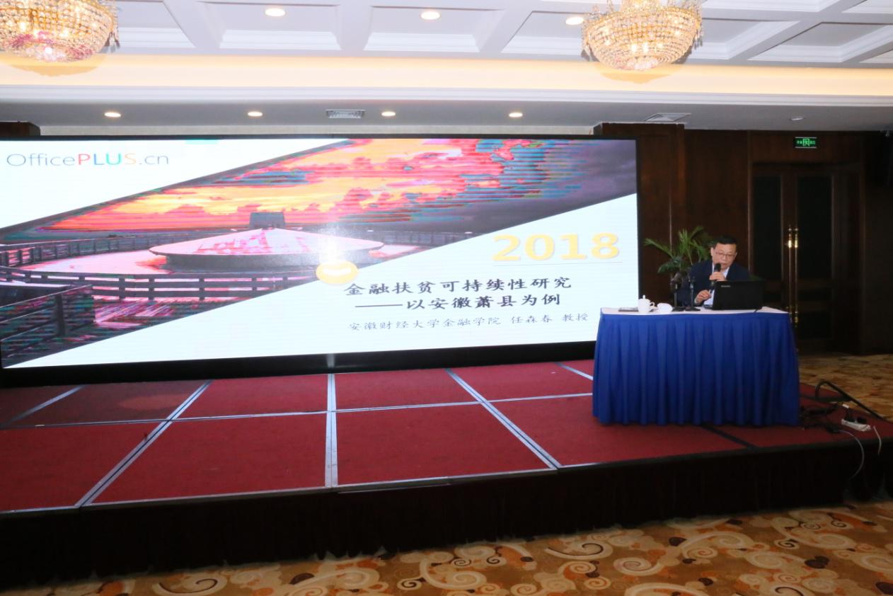 在优秀论文展示环节,宣城市金融学会高勇、池州银监分局刘广、农业银行安徽省分行侯杰分别作了交流发言。任森春交流的获奖论文是“金融扶贫可持续性研究——以安徽萧县为例”,交流发言受到了与会人员的广泛关注。