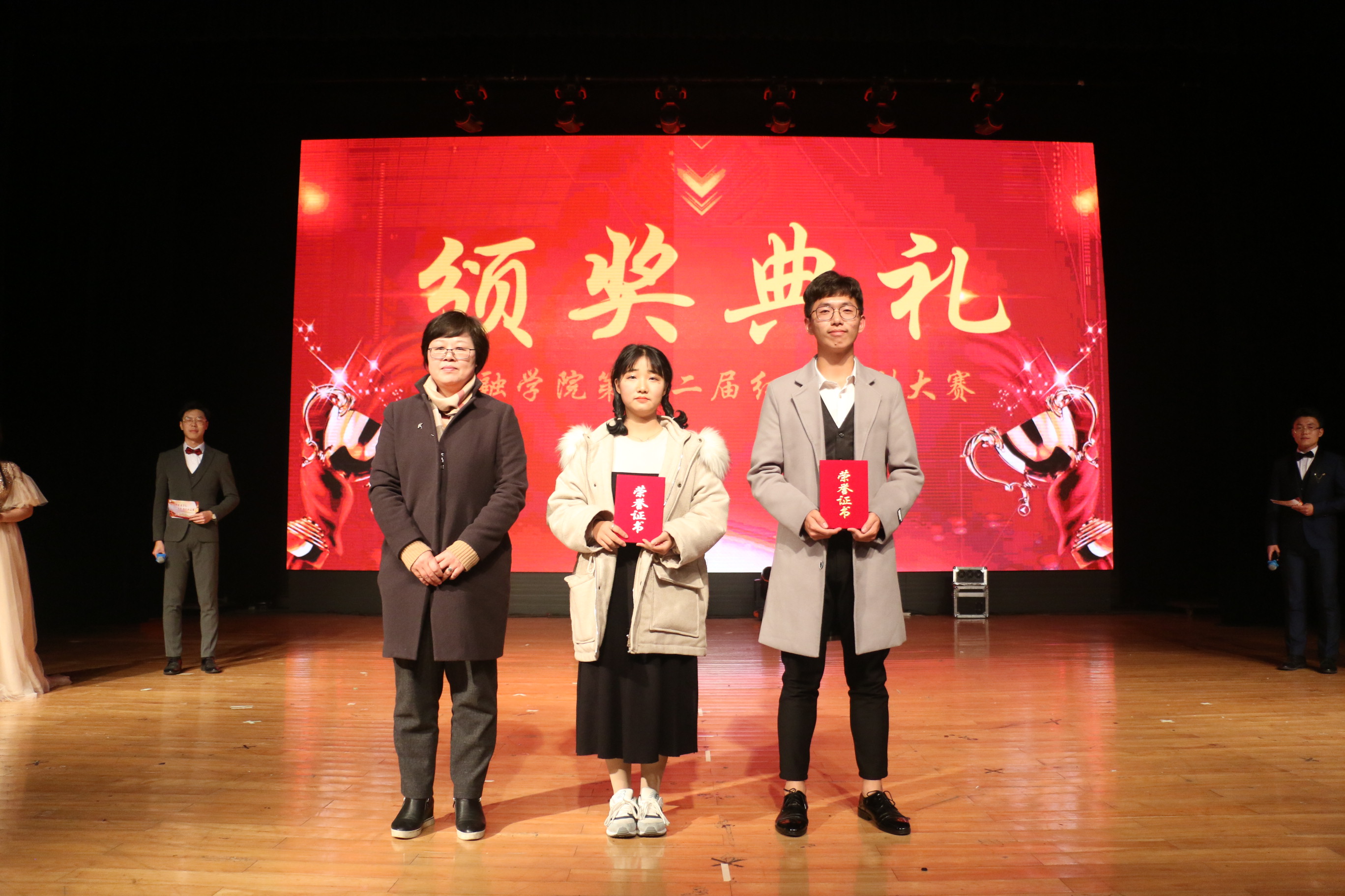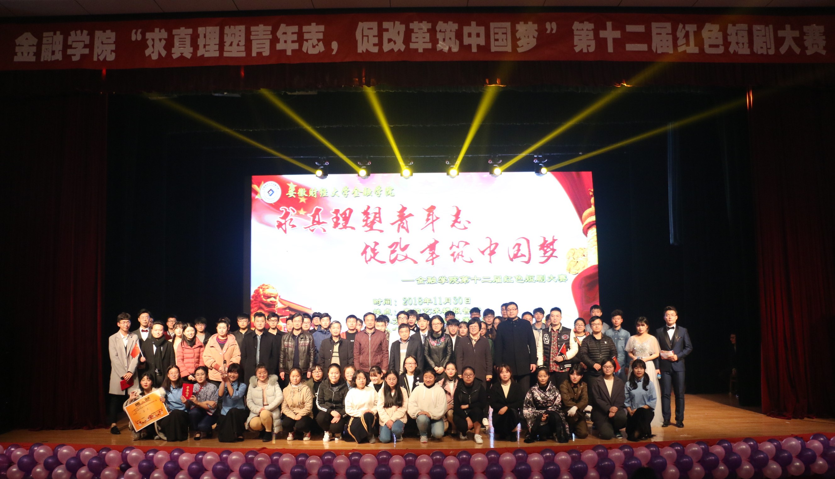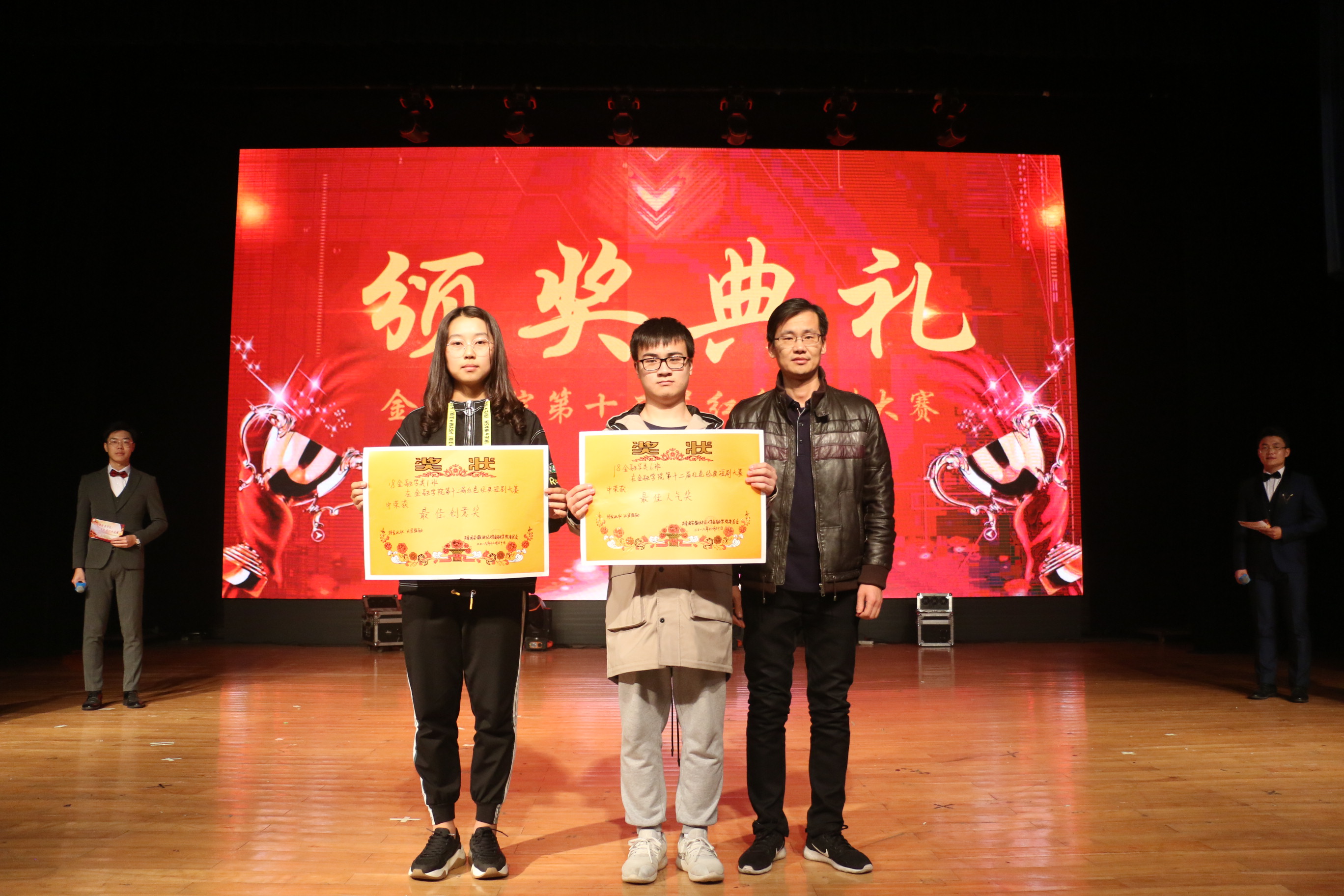 经过激烈角逐, 18金类4班《五四风潮》获一等奖; 18金融2班《孝子?》、17金类6班《梦回抗日年代》、18金类6班《黎明前的抉择》获二等奖; 18金融5班《饭局》、18金类1班《晨曦》、18金类5班《送水》、17金融13班《祖国不会忘记》获三等奖; 18金类6班刘浩宇获最佳男演员、18金类4班武楠楠获最佳女演员;精神文明奖17金融14班、18金融7班;最佳组织奖18金类3班、18金融6班;最佳人气奖18金类6班。