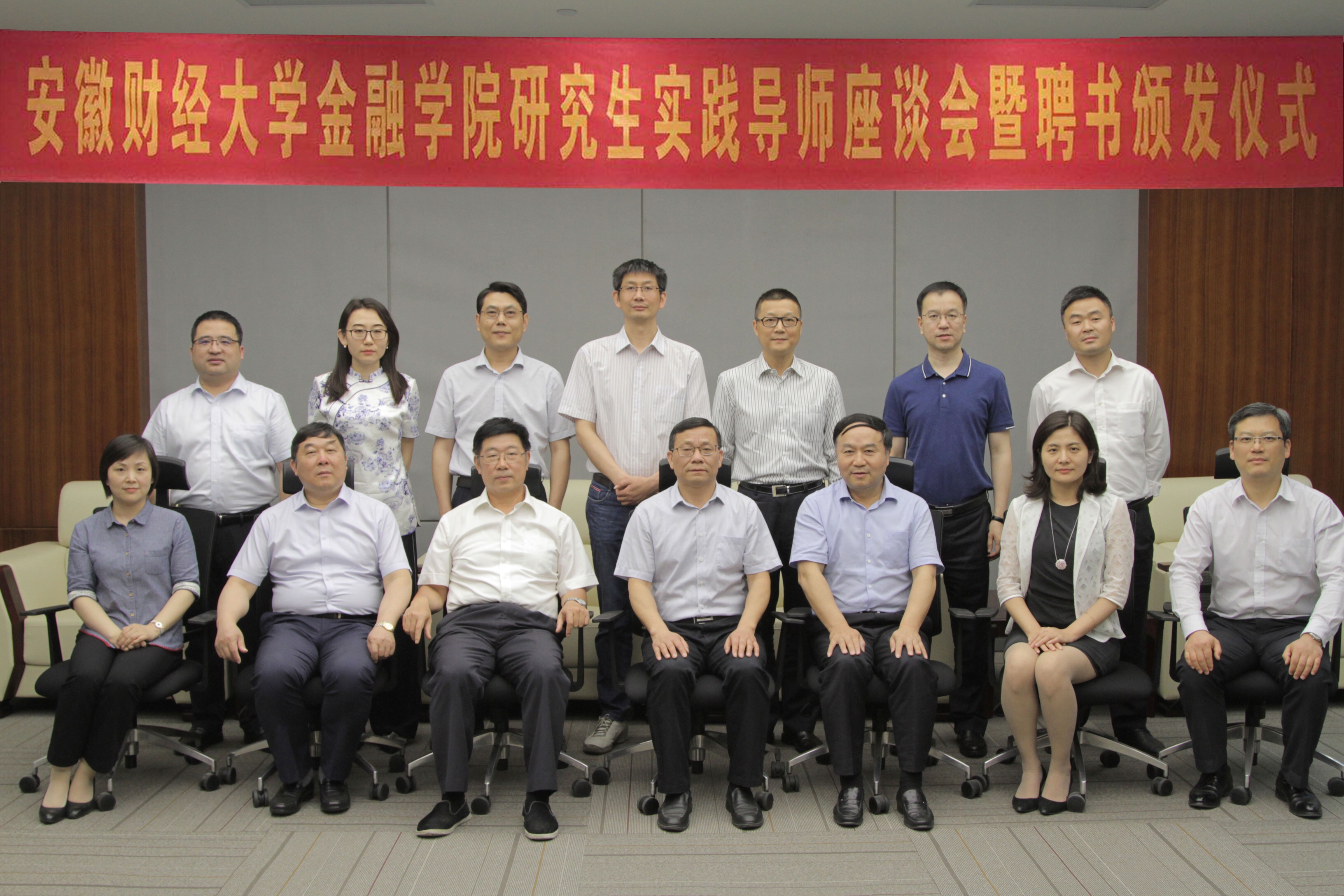 5月29日下午,我院专业学位实践导师座谈会暨聘书颁发仪式在建设银行合肥生产园区B座举行。中国建设银行电子银行中心总经理杨利民、合肥兴泰金融控股集团总经理郑晓静、合肥科技农村商业银行董事长胡忠庆、华融消费金融公司副总经理王新潮、科大讯飞智能服务事业部副总经理沈海波、徽商银行零售银行部总经理刘阳、安徽安利材料科技有限公司副总经理刘松霞、华安证券信用交易部总经理陆锋、兴业银行合肥高新区科技支行行长助理彭阳等专业学位实践导师参加了会议。我院院长任森春教授、副院长万光彩教授、院长助理舒家先博士、院教学管理办公室主任赵长娟等参加了座谈会。会议由舒家先主持。