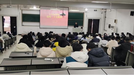 为深入学习宣传贯彻党的二十大精神,11月30日下午金融学院党委明德楼118教室召开党员大会会上学院党委书记蒋晓华做党的二十大精神宣讲报告
