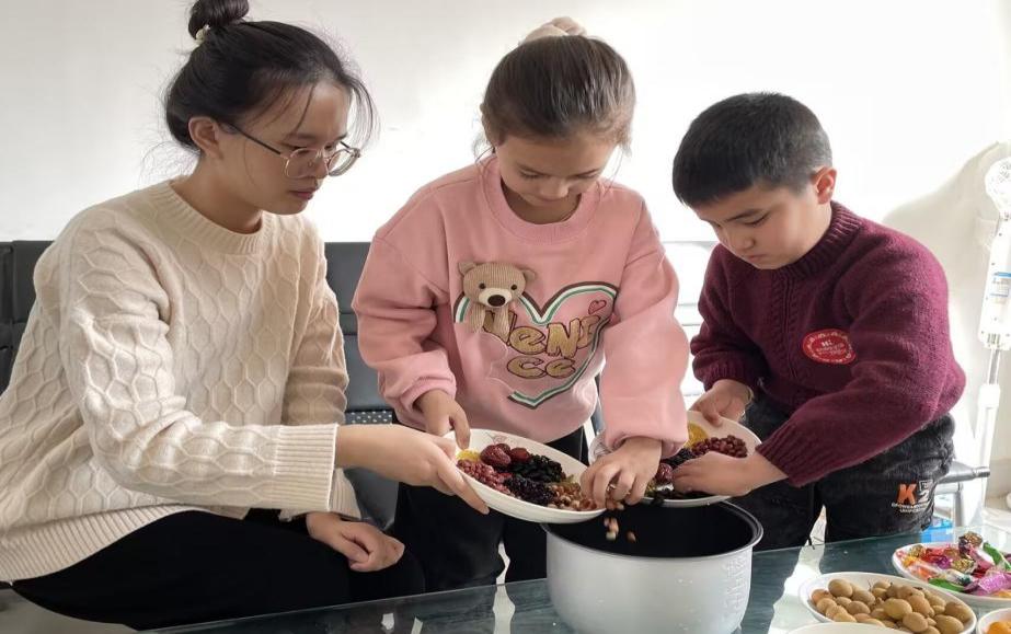 在寒暑假七彩假期活动中,张凤珍面向学生开展文化类、教育类主题活动,以讲座、游戏、家访等形式开展学业辅导、亲情陪伴、思想引领等,服务学生数量50余人,累计时长400余小时。寒假期间,张凤珍组织开展了以“师生煮粥话家常,共度浓情腊八节”为主题的腊八节系列活动,通过为学生讲解腊八节相关传统、与学生共同制作腊八粥和腊八节手工作品,为学生普及中华优秀传统文化,进一步激发学生的爱国情怀。