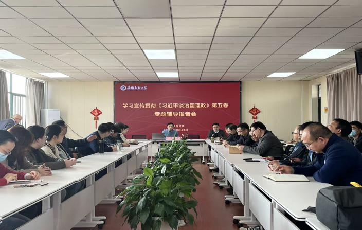 为深化对习近平新时代中国特色社会主义思想最新成果的理解,准确把握《习近平谈治国理政》第五卷的理论精髓与实践价值,10月28日下午,学院举办学习宣传贯彻《习近平谈治国理政》第五卷专题辅导讲座,学院领导和全体教职工参加。学校党委宣传部常务副部长、马克思主义学院党委书记孙涛受邀作辅导报告。讲座由学院党委副书记盛先科主持。